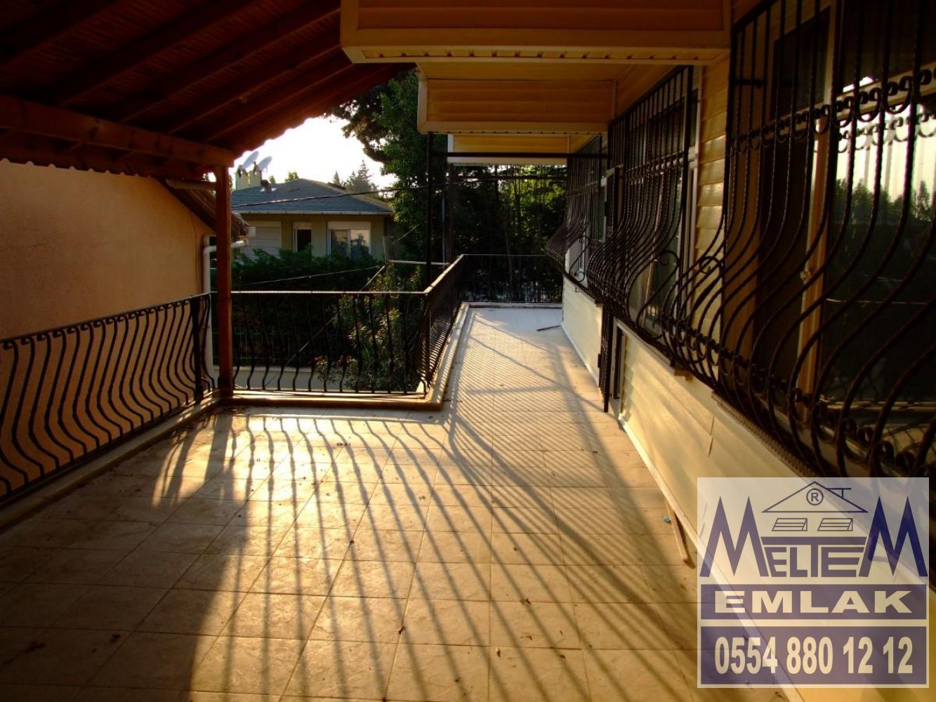 büyük keyifli bir ahşap ferguleli verandası ve ekip biçilen kendine ait bahçesi vardır.